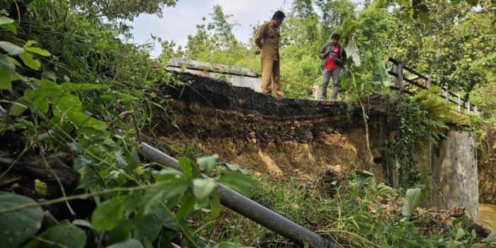 PATI, Suarapatipers.id – Hujan lebat yang mengguyur wilayah Kecamatan Pucakwangi, Kabupaten Pati pada Senin malam (30/3/2026) mengakibatkan jembatan penghubung antar dukuh di