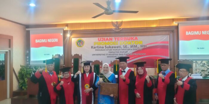 SEMARANG, Suarapatipers.id – Promovenda Kartina Sukawati resmi dinyatakan lulus dalam ujian terbuka disertasi Program Doktor Hukum Universitas 17 Agustus 1945 (Untag) Semarang,